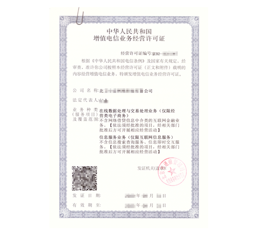 增值電信業(yè)務(wù)經(jīng)營許可證,指利用公共網(wǎng)絡(luò)基礎(chǔ)設(shè)施提供的電信與信息服務(wù)的業(yè)務(wù)的許可證,根據(jù)企業(yè)經(jīng)營業(yè)務(wù)種類不同具體分為ICP證、SP證、IDC證、EDI證、ISP證、國內(nèi)多方通信、內(nèi)容分發(fā)網(wǎng)絡(luò)、呼叫中心許可證、存儲轉(zhuǎn)發(fā)類業(yè)務(wù)等,企業(yè)需根據(jù)實際營業(yè)業(yè)務(wù)來申請相應(yīng)許可證。